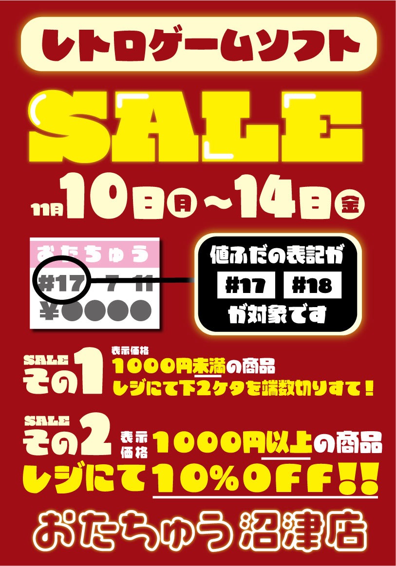 《11月10日(月)〜14日(金)》レトロゲームソフトセール!!■