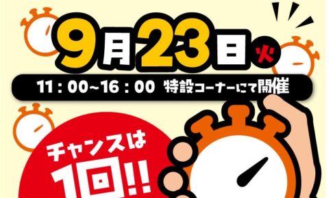 【イベント】 はかってドンピシャ 9月20日(土)〜21日(日) 11時〜16時開催 イベント参加チケット1枚で参加できます! チャンスは1回! おもりをすくって300g目指してお菓子ゲット!! イベント参加チケットはU…